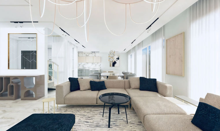 Welcome to the contemporary family house, where natural materials and neutral aesthetics meet luxury and elegance. My interior decoration features stunning marble accents and exquisite chandeliers that add a touch of sophistication to every room. Come and experience the perfect blend of comfort and style in my decoration.